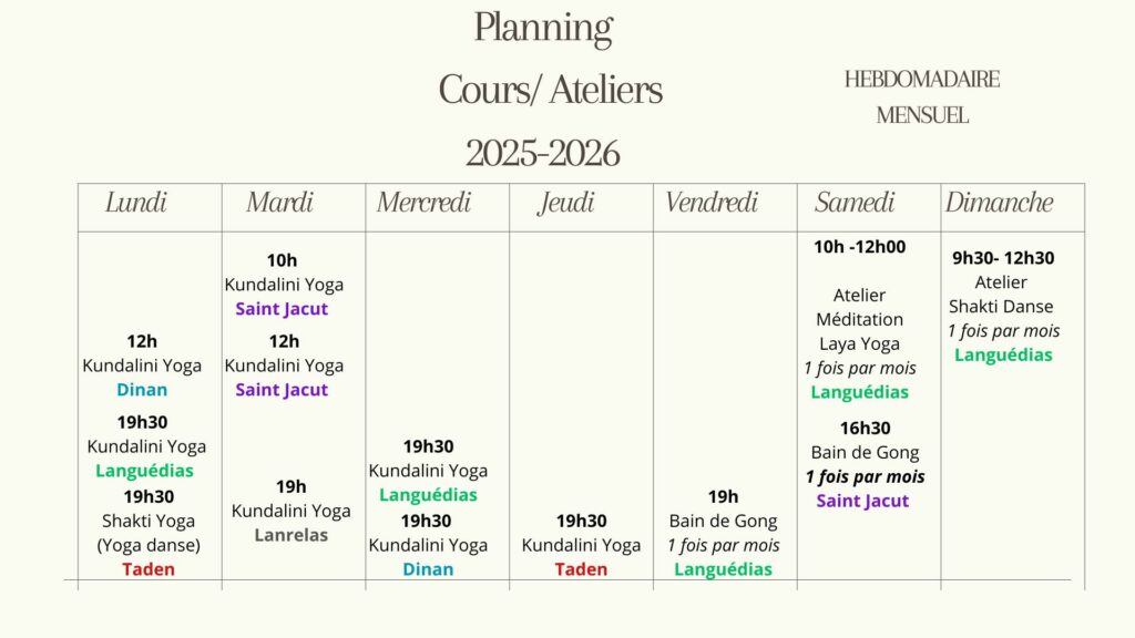 Tarifs annuels des cours de Kundalini yoga à Dinan, Languédias, Lanrelas
